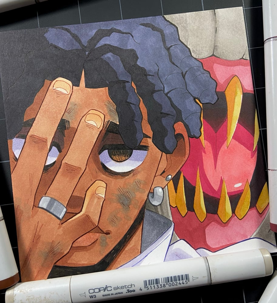 This piece was done with Copic markers on 6x6 vellum Bristol paper.